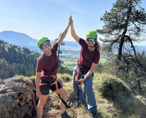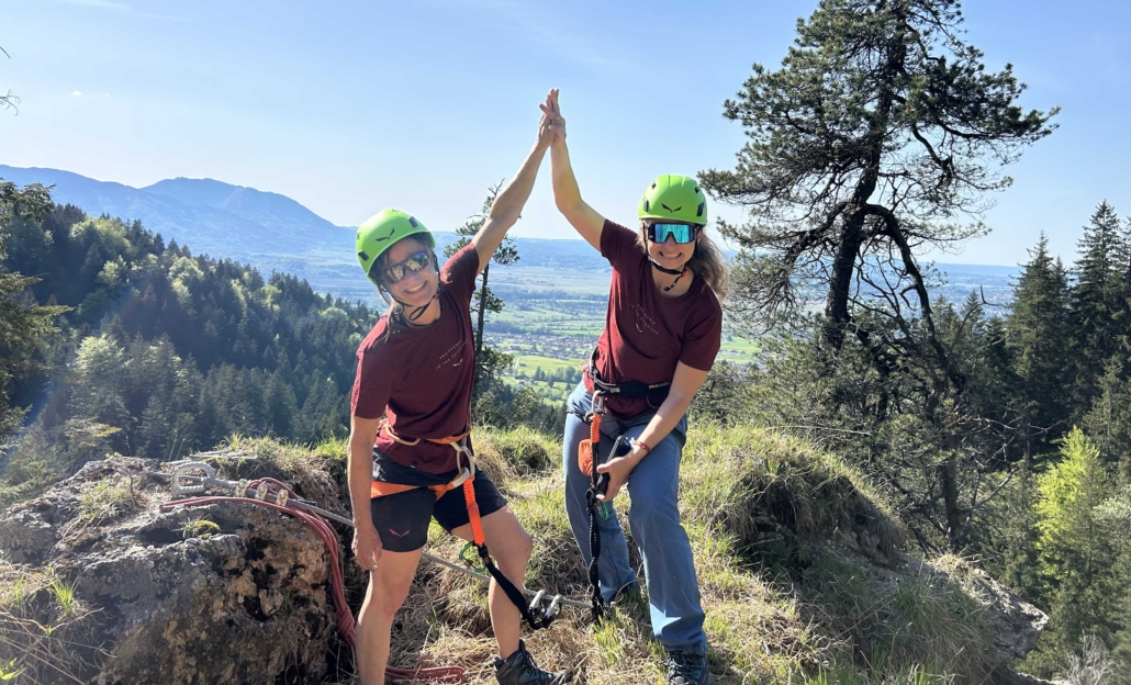 Du bist neugierig auf Klettersteige, hast aber noch keine Erfahrung? In unserem Schnupperkurs in Ohlstadt bekommst du die ideale Gelegenheit, diese spannende Bergsportart ganz ohne Vorkenntnisse kennenzulernen. Am Übungsklettersteig im bayerischen Voralpenland machen wir dich Schritt für Schritt mit dem Klettersteiggehen vertraut – kompetent begleitet und mit viel Ruhe.