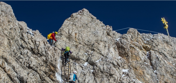 Klettersteig Zugspitze via Höllental & Klettersteig Alpspitze via Ferrata sind im Raum Garmisch die bekanntesten Klettersteige der Zugspitzregion.